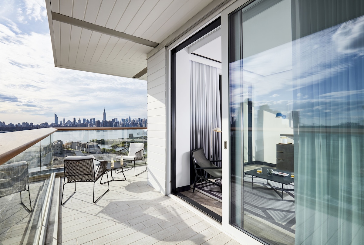 Its breathtaking panoramic views of the Manhattan skyline from its rooftop and private balconies, offering a unique perspective of the city.